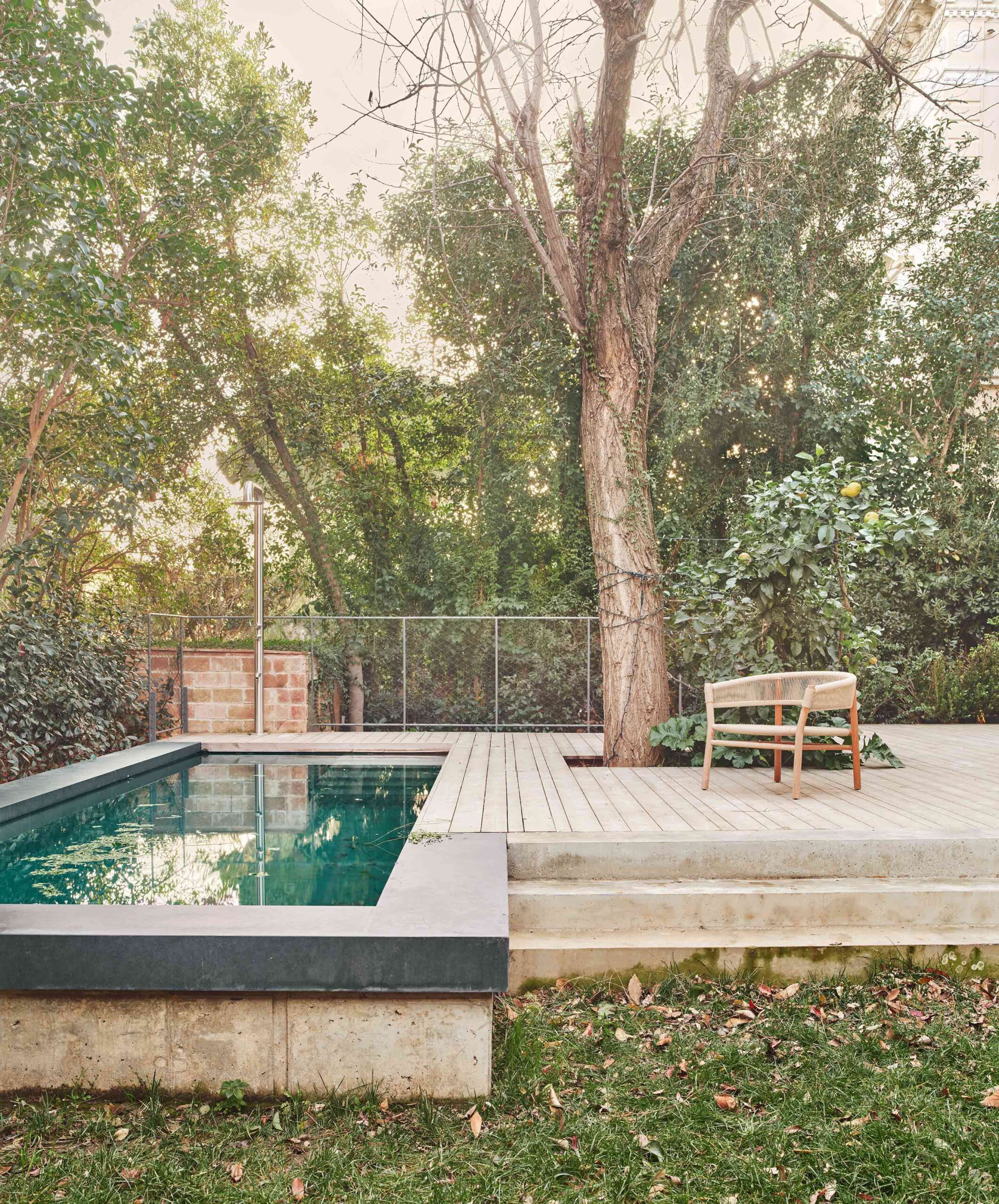 La intimidad fue una preocupación fundamental. La tipología y las características de la trama urbana del emplazamiento exigían proteger los espacios interiores del jardín, evitando exposiciones visuales directas. Para ello, se trabajó con una disposición estratégica de la vegetación y con recorridos visuales controlados que garantizan privacidad sin perder luz ni apertura.