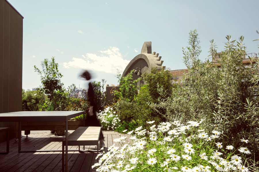 Se trata de una vivienda sobreelevada, diseñada y construida en una nave industrial por La Casa por el Tejado. VERVEINE, se incorporó para realizar un proyecto de exteriores que pusiera en valor su ubicación en una arteria central de Barcelona, con criterios de sostenibilidad y responsabilidad urbana.