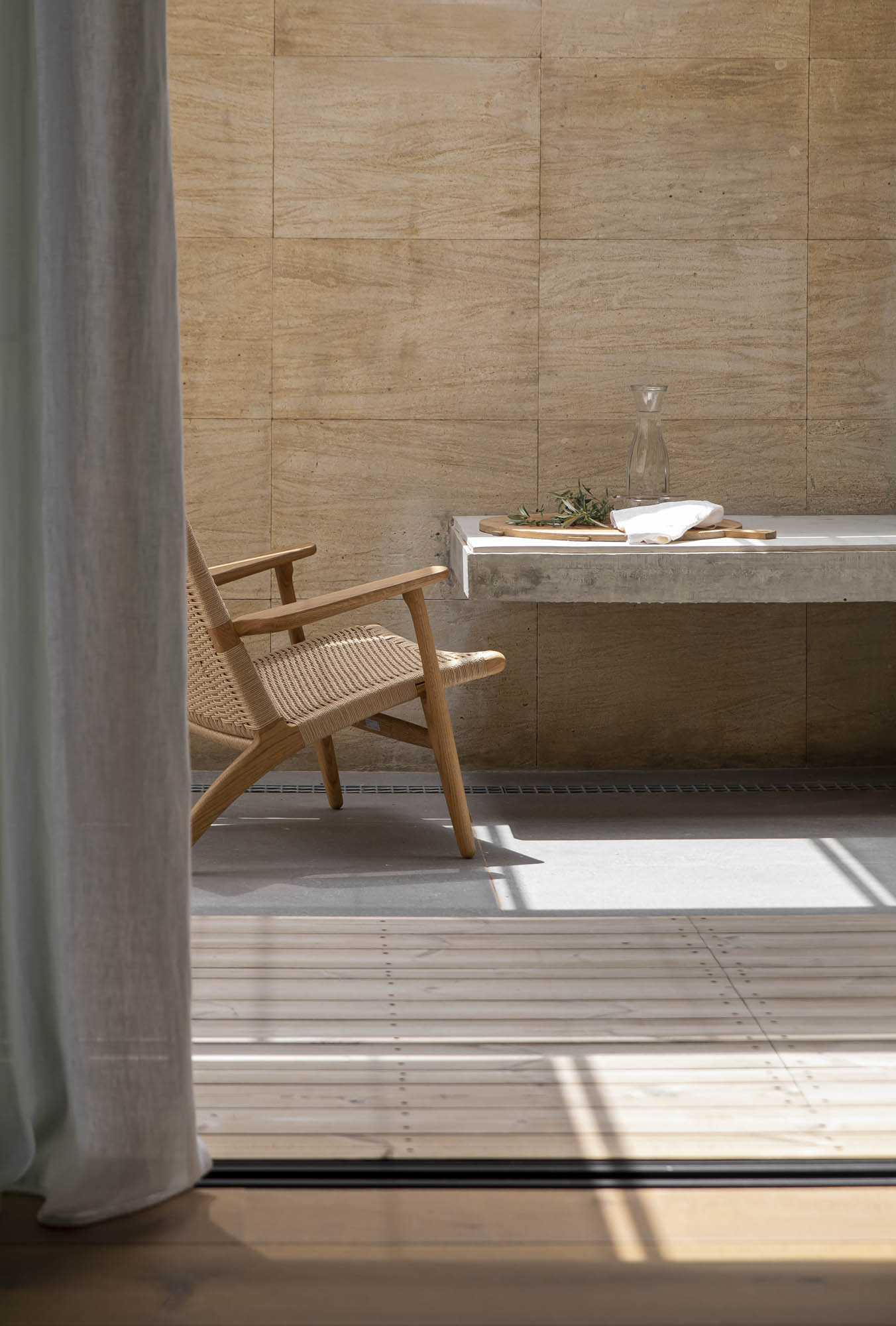 Desde la primera etapa de encaje del proyecto, vimos clara la fusión interior y exterior de esta vivienda familiar, y por tanto la necesidad de trabajar al unísono con Teresa Cabaní, interiorista del proyecto.