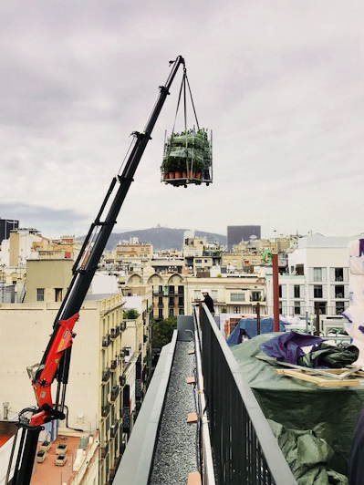 UN JARDÍN CONSTRUIDO EN UNA NAVE, TRANSPORTADO Y ENSAMBLADO EN LO ALTO DE UN EDIFICIO